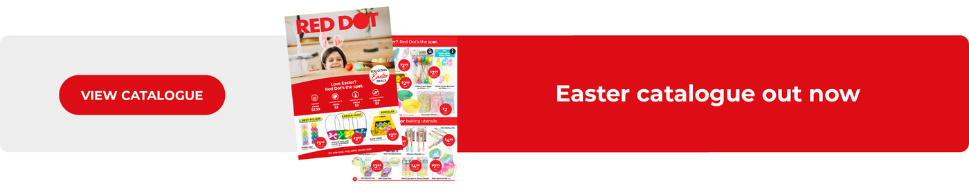 Our online range is just the start. You’ll find an even bigger range of affordable party, pets, storage and craft essentials at your local Red Dot or Red Dot Home. Whether you're planning a last-minute birthday, organising the school term, decluttering the garage or just stocking up on everyday bits and pieces, we've got what you need, when you need it.